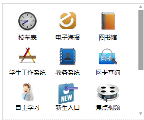 前些天我们学生在线首页改版,要做一个工具栏,由于版面的限制,原先策划的很多工具只好安排在一个小区域里面,具体效果如下: