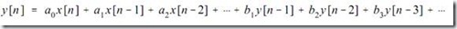 其中,x[]和y[]分别是输入和输出信号,a和b是递归系数。可以写成下面的形式: