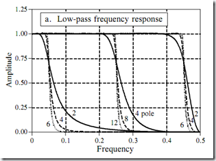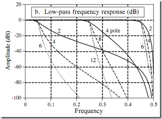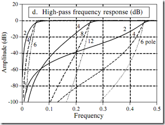 当接近这一极限时,滤波器的性能将变差。阶跃响应将出现更大的过冲,阻带衰减将变差,频率响应将出现过多纹波。如果滤波器的设计指针太高,或系数中出现了错误,输出可能振荡直至有溢出发生。