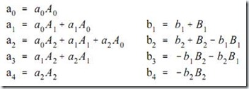 公式(4)符合公式(2)的形式,因此我们可以直接提取实现串联系统的递归系数