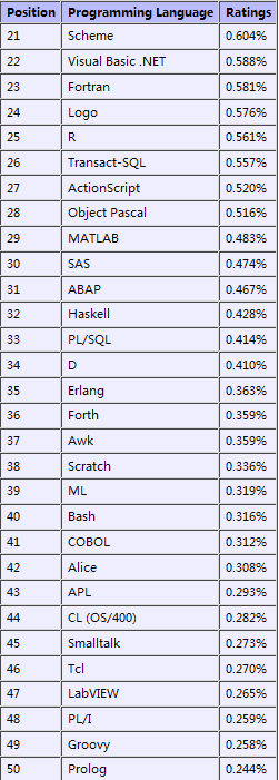以下是前50名编程语言排名: