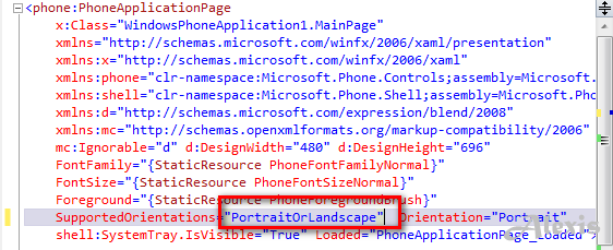 我们可以做如下的修改 ,将SupportedOrientations设为PortaitOrLandscape,如下图