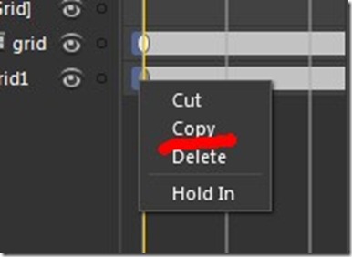 选择起始点的第一个关键帧,点击右键,选择Copy,这个操作会将这个关键帧的信息记录下来,你可以粘贴对象使它们也有对应的动画,在这里,我们仅仅是操作动画,从0的位置到新的位置,并且返回到初始状态。