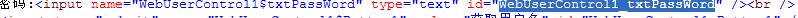 这里txtUserName为用户控件内部的一个子控件的ID,txtUserName.ClientID是获取用户控件在客户端解析之后的最终ID,而<%=txtUserName.ClientID%>得意思就是在asp.net页面执行这段服务器端代码