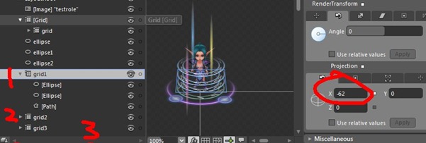 下一步继续将组合的Grid再组合到一个新的Grid中,为什么这么做呢,因为要变换透视感觉,在后面的动画中的旋转做准备