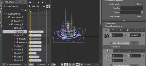 这个动画做起来并不难,难就在对这些控件之间的关系理解,最后,我们把角色的参照图给删除掉,然后生成工程,在MainPage里加入这个控件,看看效果。