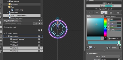 只需要用Ellipse即可,我们用不上太复杂的Path,最后为了让这个升级动画更丰富一点,加入几个套圈。