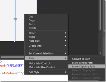 设置两个Rectangle分别对齐到两个Grid上,大小位置都是一样,然后分别使用Make Clipping Path对自己对应的Gird裁剪。