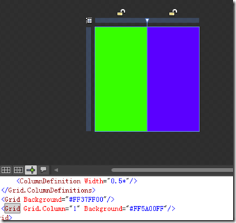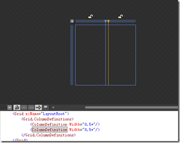 添加两个Grid到控件LayoutRoot中,各自为一半,效果如下,为了方便演示,我填充了颜色做区分