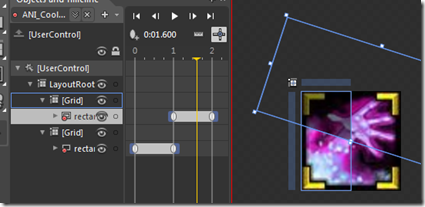 上面的图中就是一个Grid当中加了Rectangle,请注意Rectangle的参数,只需要将边距设置为-32即可,大小是图标本身的2倍,因为我们要利用它的旋转产生冷却效果。