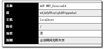 注意,在客户端使用javascript脚本无法获取“ASP.NET_SessionId”的Cookies, 因为此Cookies在服务器端设置了HttpOnly属性为true。