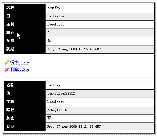 也就是说如果在、/chapter10/路径下面的页面, 获取testKey这个Cookies的值,则只能获取到testValue222222这个值。