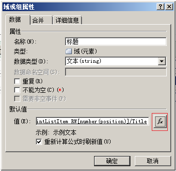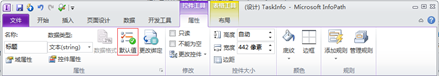 选中"标题"字段,点击在Ribbon区的"属性"标签下的"默认值"按钮。
