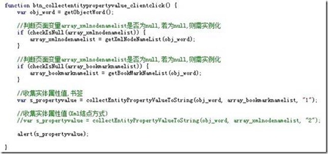 i. 声明页面变量array_xmlnodenameist和array_bookmarknamelist两个变量,用于存储Word文档中结点名称列表和书签名称列表,目的是提高性能,不必每次再循环获取.上述变量可在OA1_DocumentOpened事件中赋值.