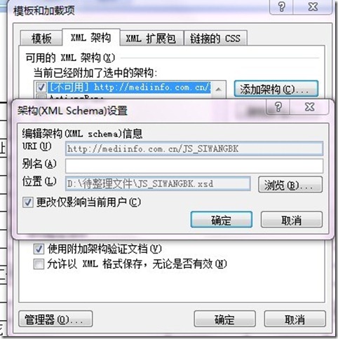 ii. 单击”架构”菜单,出现”模板和加载项”对话框,如图-4所示