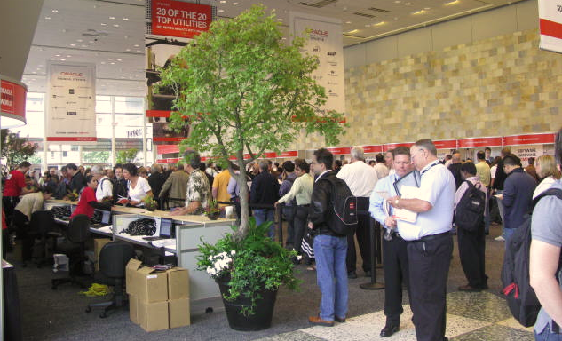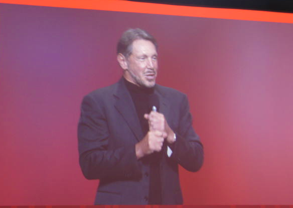 开展前夜,自然要去听一下Larry Ellison的主题词。晚上5点半,keynote正式开始。一个室内会场相当大,估计坐一两万人没问题,基本上座无虚席。首先是Oracle的一些副总致欢迎词,其中提到,如果大家在旧金山持参展胸牌在全市各大购物场所购物,都可以享受25%的折扣,厉害!接下来惠普作为超级赞助商做了一番广告攻势,时间很长,把最开始非常振奋的气势消耗殆尽。终于熬到大BOSS,Larry Ellison登场了。这位超级航海大玩家首先介绍了宝马-Oracle帆船对抗赛,以及巨资打造的超高的帆船:要不是金门大桥的高度限制,他说肯定把船拖到旧金山让大家观摩。一个有意思的细节是,登台前这哥们半天没见人,冷场了半天;后来拿了几瓶水气喘吁吁的跑上来,最开始的几分钟讲话,一直比较气喘,不知道是被HP冗长的发言整睡过了,还是临时上厕所没赶上,就不妄加揣测了。不过大BOSS风采确实不同凡响。