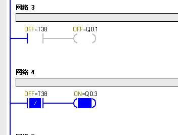 图2:使能断开后,计数到设定值后,TOF(T38)的触点动作图(其中T38常开触点是在使能由1到0负跳变后计数器计时到设定值后变为0的)