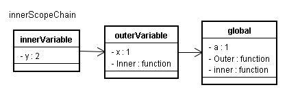 - innerScopeChain:本文术语,用作表示innerFunctionContext所拥有的Scope Chain。可用[innerVariable, outerVariable, global]表示。