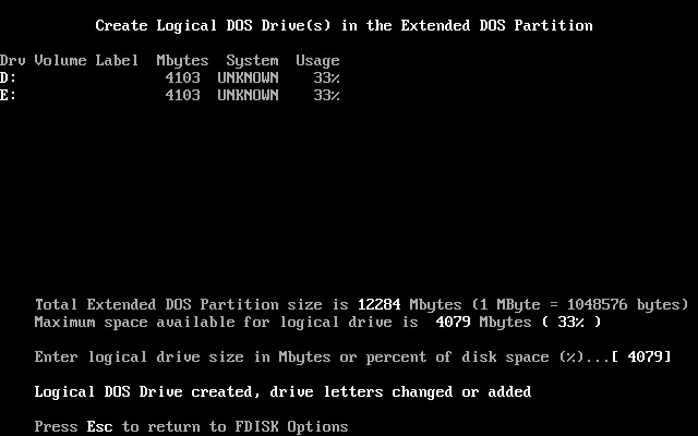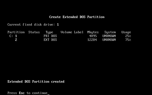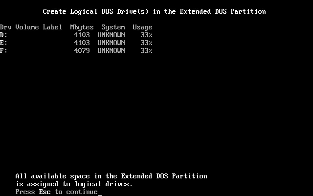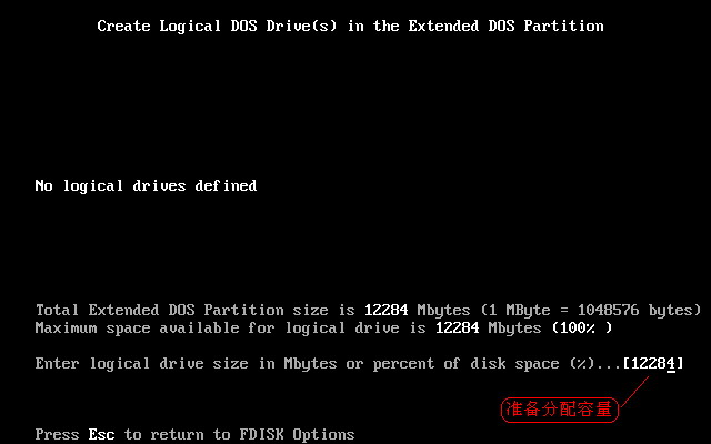 上图中显示出主分区和扩展分区参数。按Esc键后,出现如下图18所示。