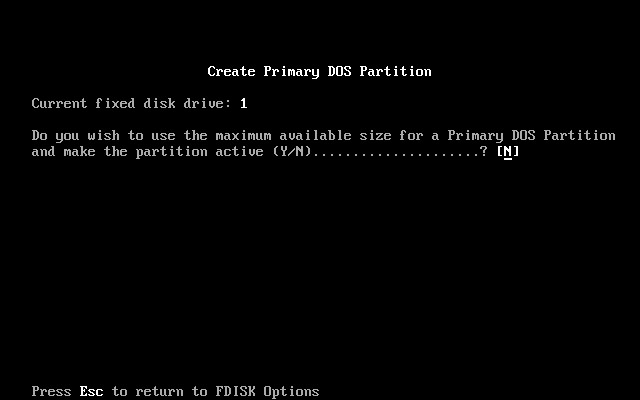 上图中问是否将全部空间分配给主分区。现在的硬盘不会只建一个分区的,因此这里输入“N”如下图7所示。