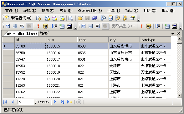 此程序主要功能就是根据手机号码段查询相应的号码归属地。数据来自网络,数据表结构如下