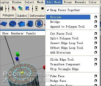 13、执行Edit Mesh——Extrude 菜单(挤压命令),如图13所示。