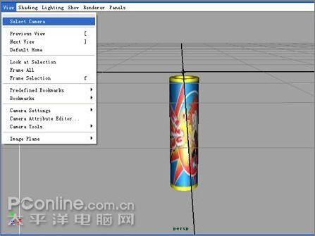 20、在persp(透视图)视图中执行:View—Select Camers, 选择摄像机,如图20所示。