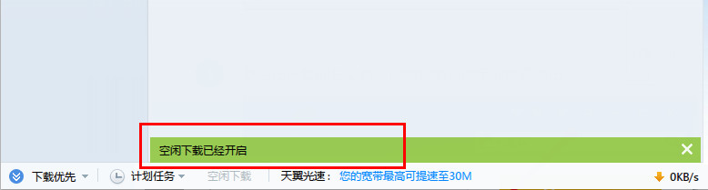 3、然后我们就可以看到迅雷会提示你开启了空闲下载