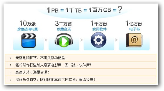 【存储空间高达数PB的网盘(1PB=1024TB、1TB=1024GB)!】