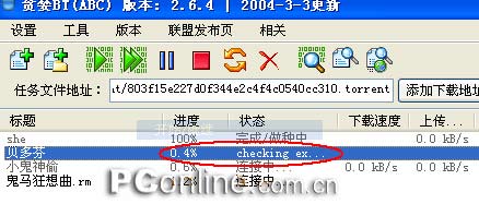 开始使用贪婪BT感觉一个最大的问题是当我们停止下载,以后再次继续下载时发现启动速度很慢,原因是它要对已经下载任务的百分比依次进行检测(图7),如果下载的文件体积很大,又已经下载了大部分文件,则这个检测的过程会花不少时间,同时计算机的运行速度很慢,将影响用户作其它的操作。经过测试后发现贪婪BT具有设置功能我们可以通过设置改变启动运行速度慢的问题。