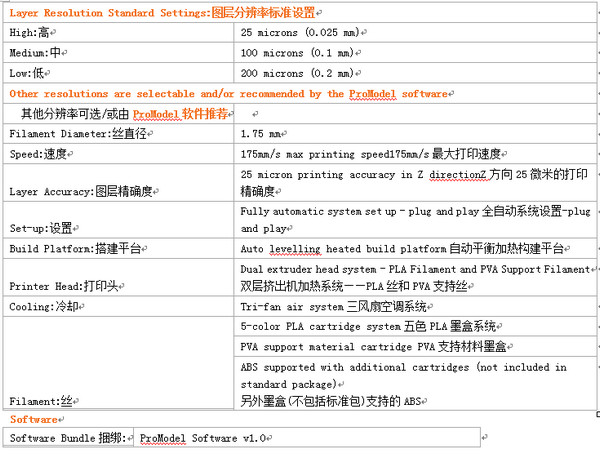 ProDesk3D将能够印刷精确到25微米,这打破了行业中使用耐用的PLA和PVA支持材料的三维打印机的行业领先水平。ProDesk3D为以PLA为基础材料的三维模型奠定了新的水平,在完成质量和耐用性上全行业领先。ProDesk3D能够打印ABS材料。