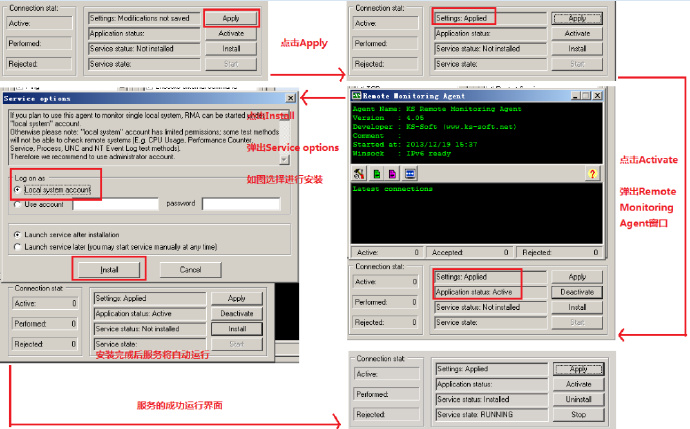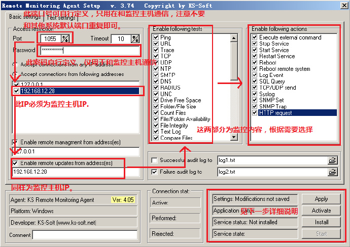 至此,被监控主机已经设置完成。记牢第5步中设置的端口号及密码。