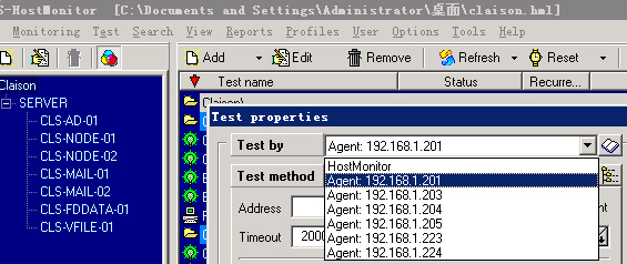 进入主机,点击桌面程序“Hostmonitor”进入程序。File->Load TestList 加载配置文件,