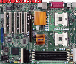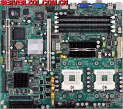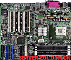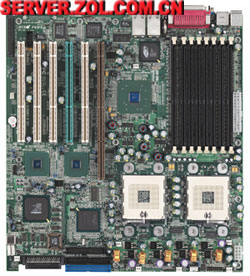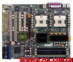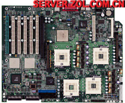 这款主板也是采用ServerWorks GC-HE芯片组,支持四路P4 Xeon系列处理器,支持400MHz前端总线,支持32GB Registered DDR200(ECC)16-DIMM内存卡;支持24GB Registered DDR200(ECC)12-DIMM内存卡;6根100/66MHz 64位PCI-X HotPlug扩展槽,1根100/66MHz 64位PCI-(X)和1根33MHz 32位PCI扩展槽,集成双Intel 82550 10/100M网卡,内建8M ATI RAGE XL显卡,1个FDD,2个串口和1个并口