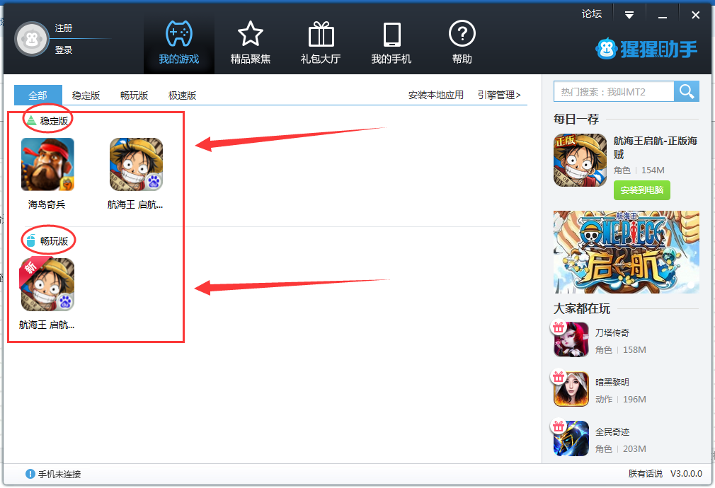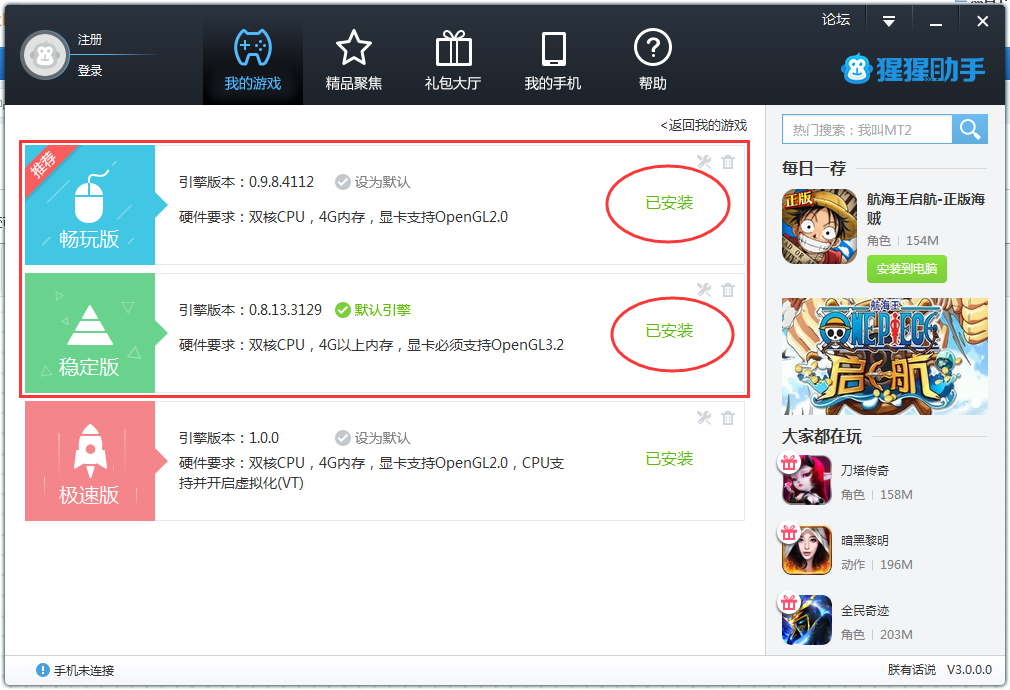 2、进入引擎管理界面后,选择下图两个引擎(稳定版、畅玩版)进行安装(已经安装的则跳过这一步):