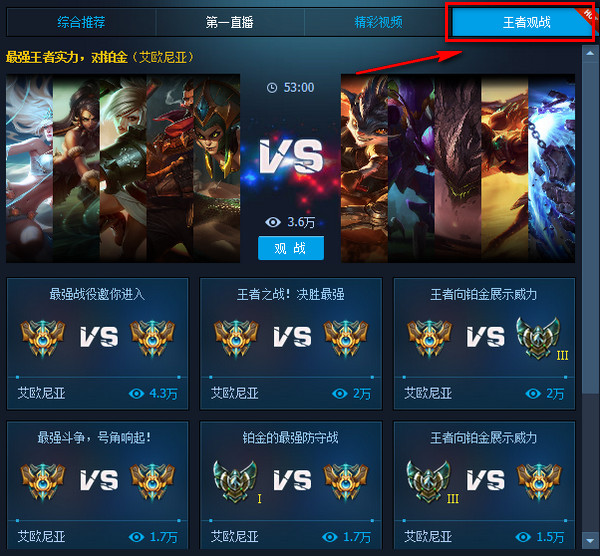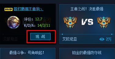 大家都知道lol官方助手中的观战功能,是针对一些高级别的玩家,如最强王者、钻石等。现在这个功能名称改为“王者联盟”了