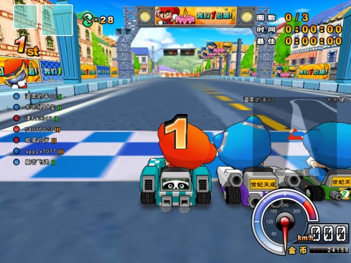 差点忘了,还有《跑跑卡丁车》,这是初一暑假开始玩的。不过水平一直上不去。初二寒假,佳佳哥的表弟(和我没有血缘关系)来我家,我发现他竟然是彩手套(最早的时候升级特别慢,彩手套足以让我膜拜了!)不过他也没指点我几句,我的水平还是很烂,到现在也就保持着初级入门区前三名左右吧。