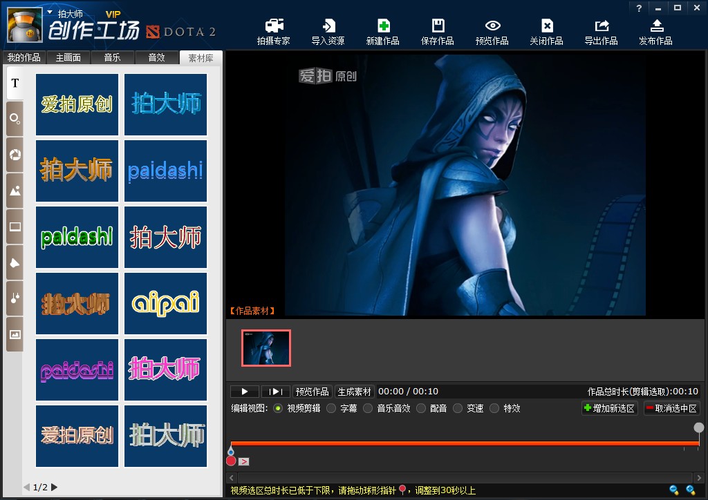 小编推荐dota2玩家使用拍大师dota2专版录像工具制作视频