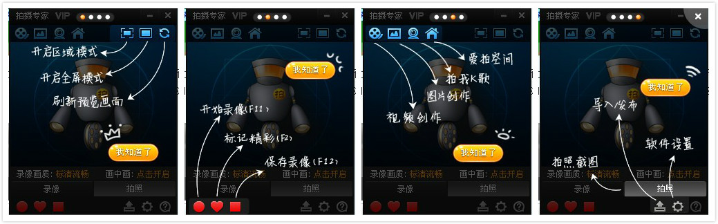 熟悉dota2录像工具之后,我们现在就可以打开DOTA2游戏客户端进入到游戏,进入游戏选择要录制的画面场景,然后打开录像工具,可以使用区域模式,或者全屏模式录制画面,点击快捷键F11就开始录像,在录制的过程中可以点击红星标记精彩记号,保存录像就按快捷键F12。这样一部DOTA2游戏视频就录制完成了。可以进入视频创作,对视频进行编辑处理,处理完成就可以导入发布,录像操作帮助如图4所示