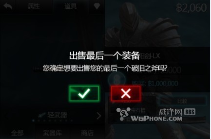 5 然后奇迹发生了!如图显示问你是否要出售一个破旧之斧(或者别的),但