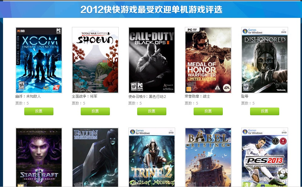 快快游戏精心策划2012游戏风云榜评选大赛,囊括3大主榜奖项,覆盖网络游戏、单机游戏、2013期待单机游戏多个领域,一方面对2012年的游戏进行年度性的评选和总结,另一方面感谢玩家对快快游戏忠实的关注!本评选从最客观最公正的原则出发,每一位玩家都有资格评选自己喜爱的游戏,力求为热情的游戏玩家打造一个公平公正的“2012年度游戏风云排行榜”!