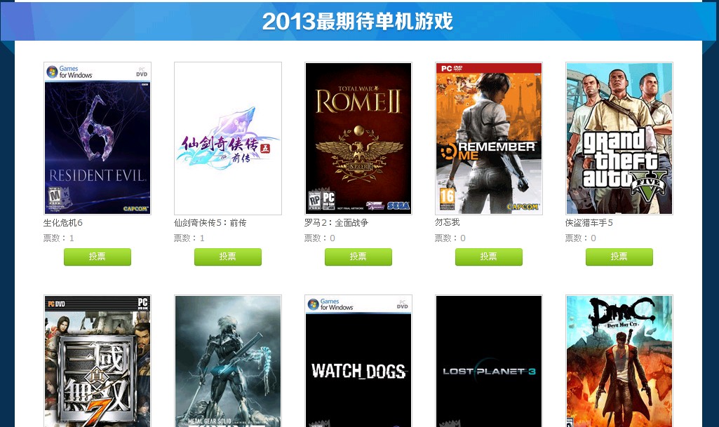 图2 最受欢迎单机游戏评选(部分)