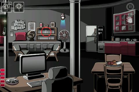 3.中间的房间,在地球仪叛变的木架上,有一条白色的竖线,点它可以得到一张CD。