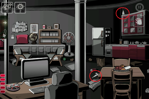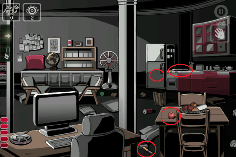 2.到最右边厨房,红色的橱柜有两个可以打开,里面分别是锤子和金钥匙。(金钥匙因为只能拿一次,所以有些关卡我已经记不清了,这一关应该是在那个橱柜的抽屉里吧。)