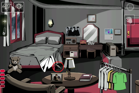1.梳妆台上有一把刷子,拿起来。(大家玩这个游戏的时候,要多注意一下人物的对话,里面有很多提示。比如这一关,你如果注意女人的话,就知道结婚照是关键了。)