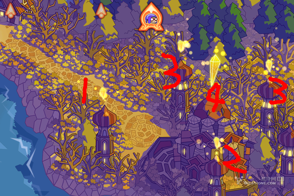 这是第二个城镇里的,这栋楼在地图右下角,要注意的是我标了3的两个宝石发出的音是一样的,所以只要按1234这个顺序,3按哪个都可以。貌似也要按两圈?