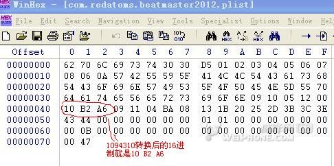 然后用WinHex打开游戏目录下/Library/Preferences/com.redatoms.beatmaster2012.plis 这个文件(先拷贝出来)