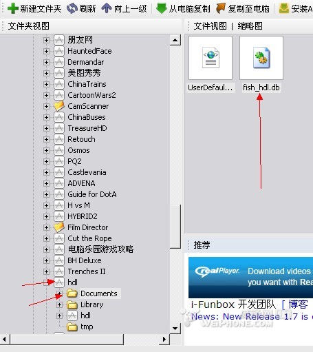 1.用ifunbox或91等软件找到游戏目录中的Documents文件夹里的fish_hdl.db。