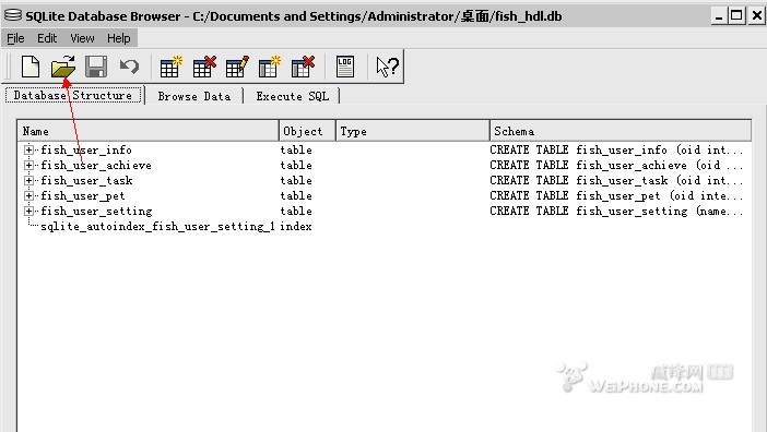2.用SQLite Database Browser软件打开fish_hbl.db文件。