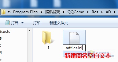 在adfiles.ini和gamemsg.xml这两个文件原来的位置,新建两个空白文本,并将文件名分别改成adfiles.ini和gamemsg.xml。注意不要忘记改扩展名。